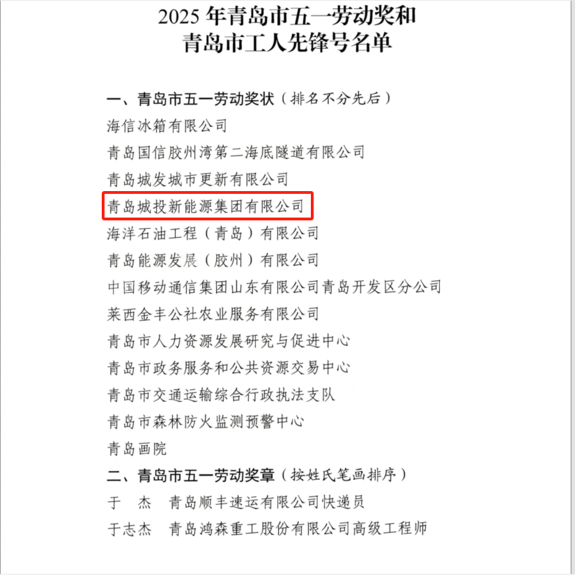4月30日,青岛市总工会公布了《关于表扬2025年青岛市五一劳动奖和青岛市工人先锋号的通报》,青岛开云在线开户新能源集团被授予“青岛市五一劳动奖状”。这一荣誉的获取既是对新能源集团绿色惠农、践行乡村振兴战略的嘉奖,更为勇当新能源行业绿色低碳高质量发展开路先锋注入了动力。