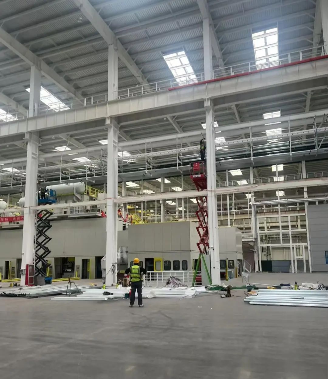 在奇瑞冲压车间扩建和新建KD车间项目施工现场仍是如火如荼的繁忙景象,处处可见工人调试设备的忙碌身影,项目管理团队及施工工人共百余人坚守一线,争分夺秒抢工期,铆足干劲赶进度,用实际行动诠释“劳动最光荣”。项目作为省市两级重点项目,2024年6月正式开工建设,总建筑面积共35767平方米,总投资约1.35亿元,主要由冲焊联合厂房冲压生产区扩建和KD车间组成,是对奇瑞超级工厂提升产能、开展KD出口业务的有力补充和保障。目前KD车间及冲压扩建车间均已完成主体结构施工,进入设备调试阶段。开云在线开户集团将全力推进项目完成建设工作,力争早投产、早见效。