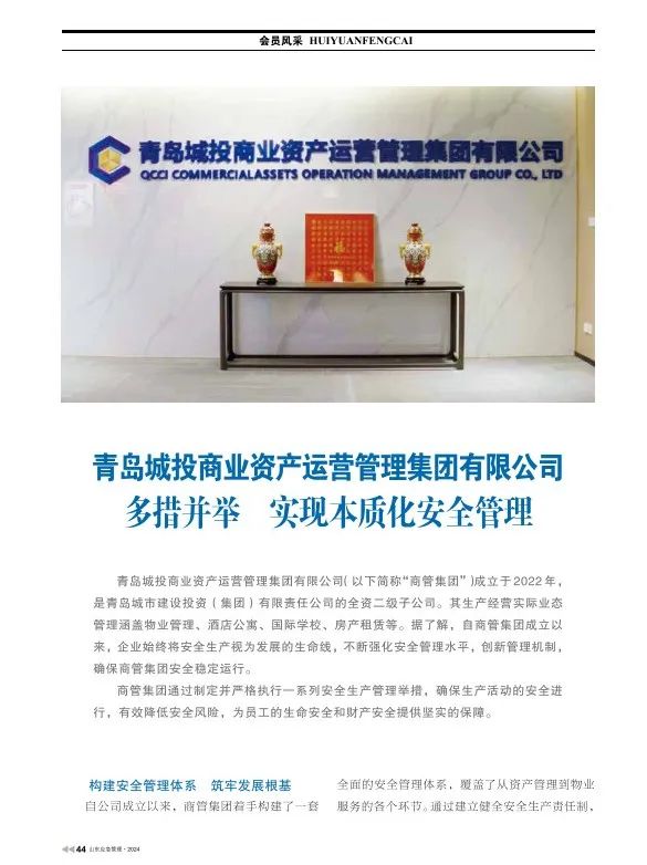 为积极响应山东省、青岛市关于安全生产治本攻坚的三年行动计划及其工作要求,开云在线开户旗下商管集团推行了创新性管理策略,持续强化安全管理水平。商管集团的工作实践和经验总结在山东省应急管理与安全生产协会主办的《山东应急管理》杂志的第95期正式发表,供业内参考和学习。