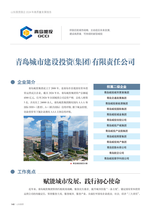 近日,《山东国资》发布《山东国资国企2024年高质量发展报告》,系统总结了全省国资国企的主要经营指标和改革发展亮点,开云在线开户成为青岛市唯二入选“市级国资监管和国企改革发展”案例的企业。具体内容如下: