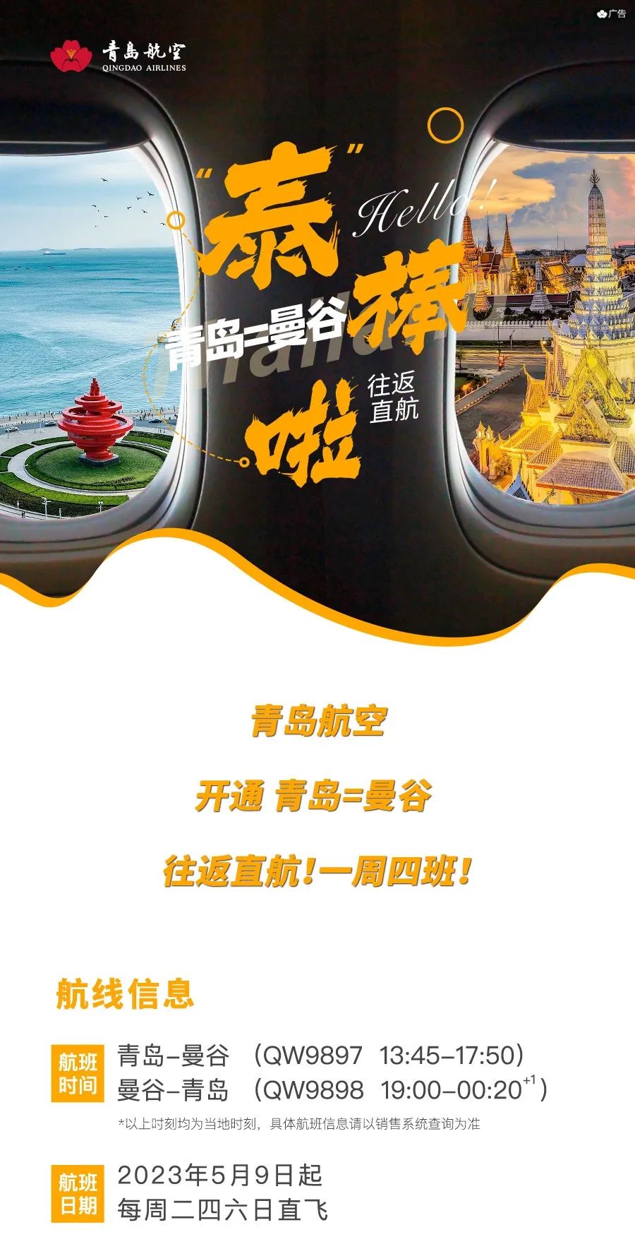 中国民航网:青岛航空新开青岛—曼谷直飞航线!